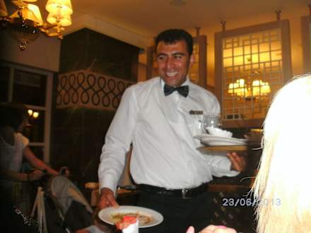 Ein immer lachender Kellner.Er ist immer freundlich hat immer einen coolen Spruch parat auch wenn es mal streßig zu geht.