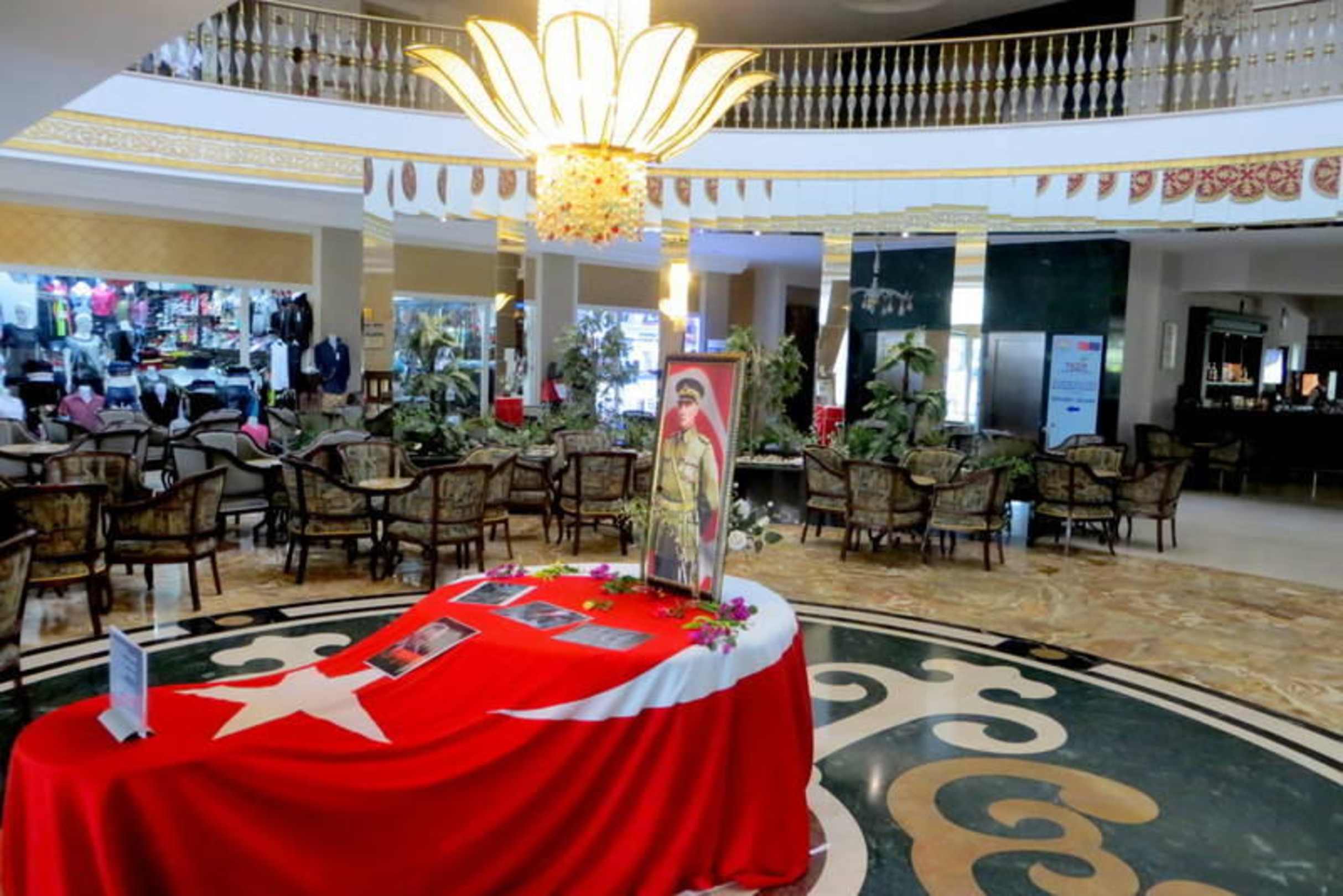 Die Halle ist zum Atatürk-Gedenktag geschmückt