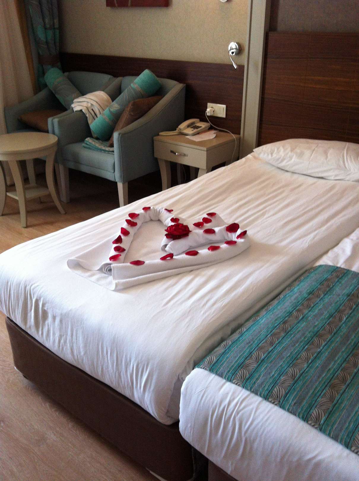 Schön geschmücktes Bett