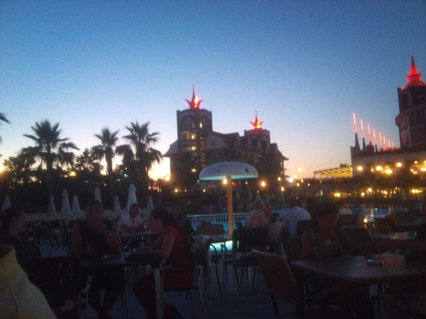 Hotel am Poolbereich am Abend
