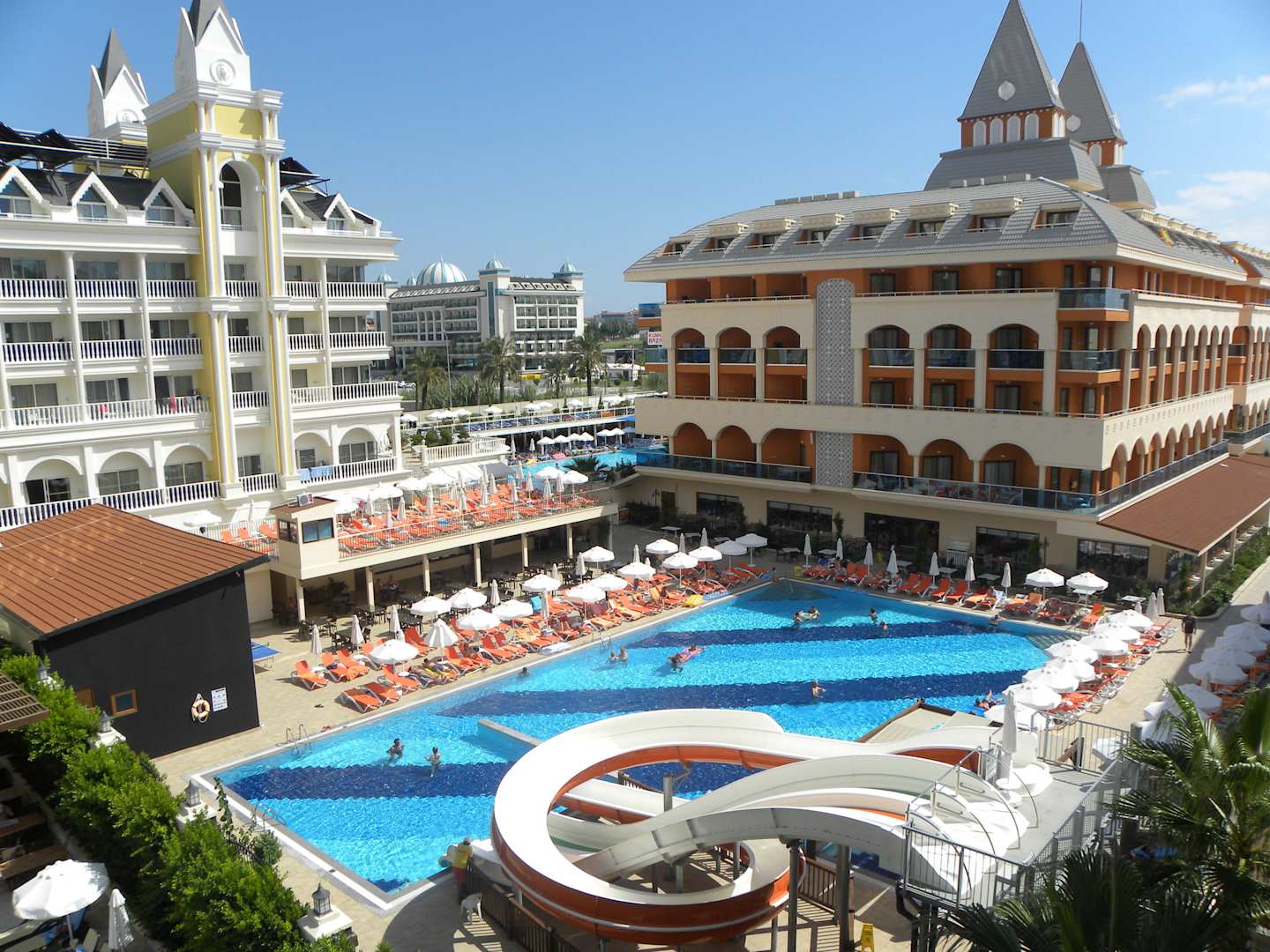 Widok z pokoju na trzy hotele