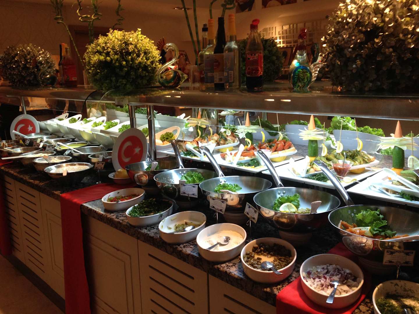 Verschiedene Salatsoßen stehen auch da