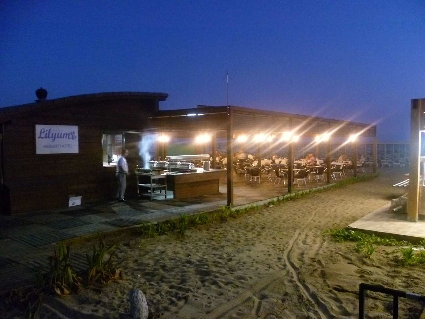 Strandrestaurant bei Nacht