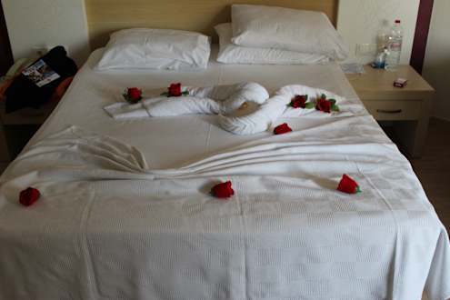 So sah das Bett jeden Abend aus, nur jedes mal ein anderes Motiv