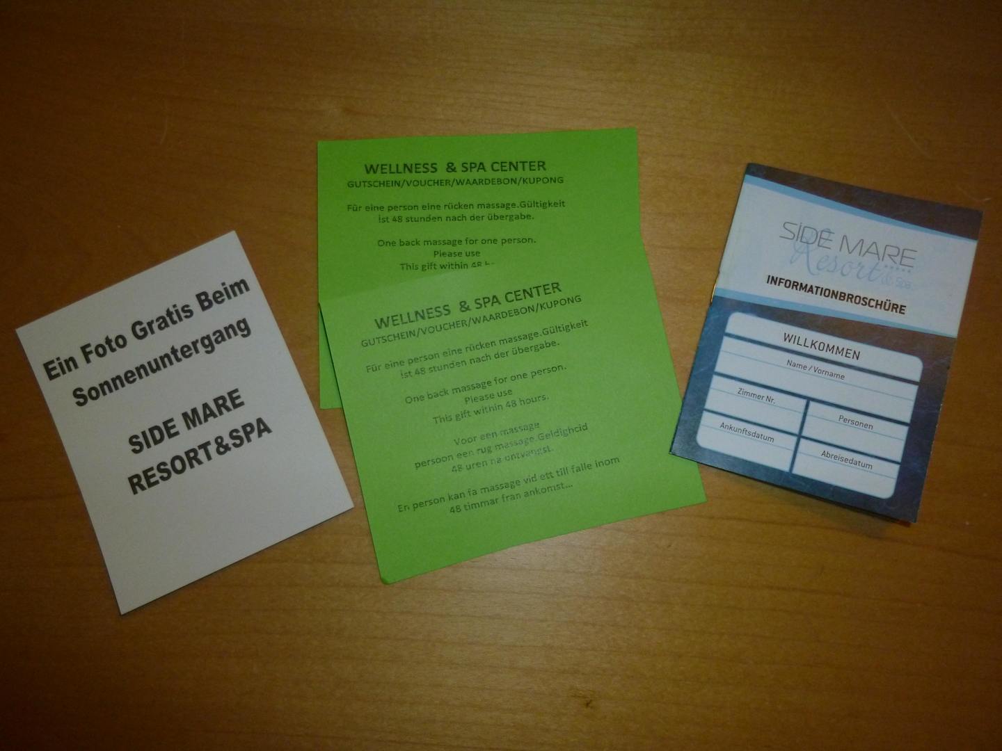 Gutscheine und Infoheft bei Ankunft