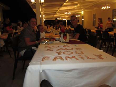 Am Abschiedabendunser Kellner hat sich immer was Einfallen lassen. Am letzten Abend, hat er unseren Tisch liebevoll geschmückt