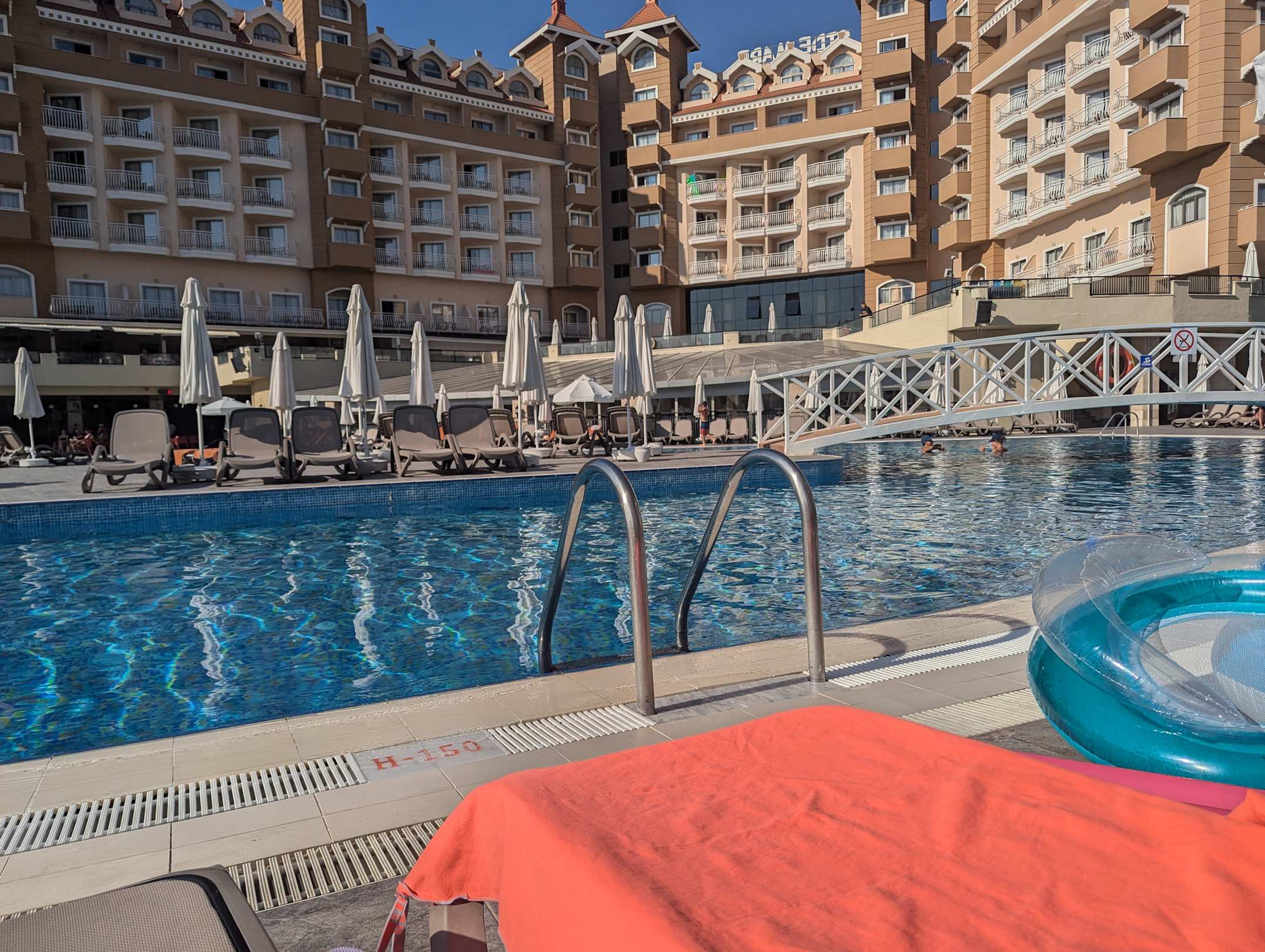 Ausblick vom unteren Pool zum Hotel