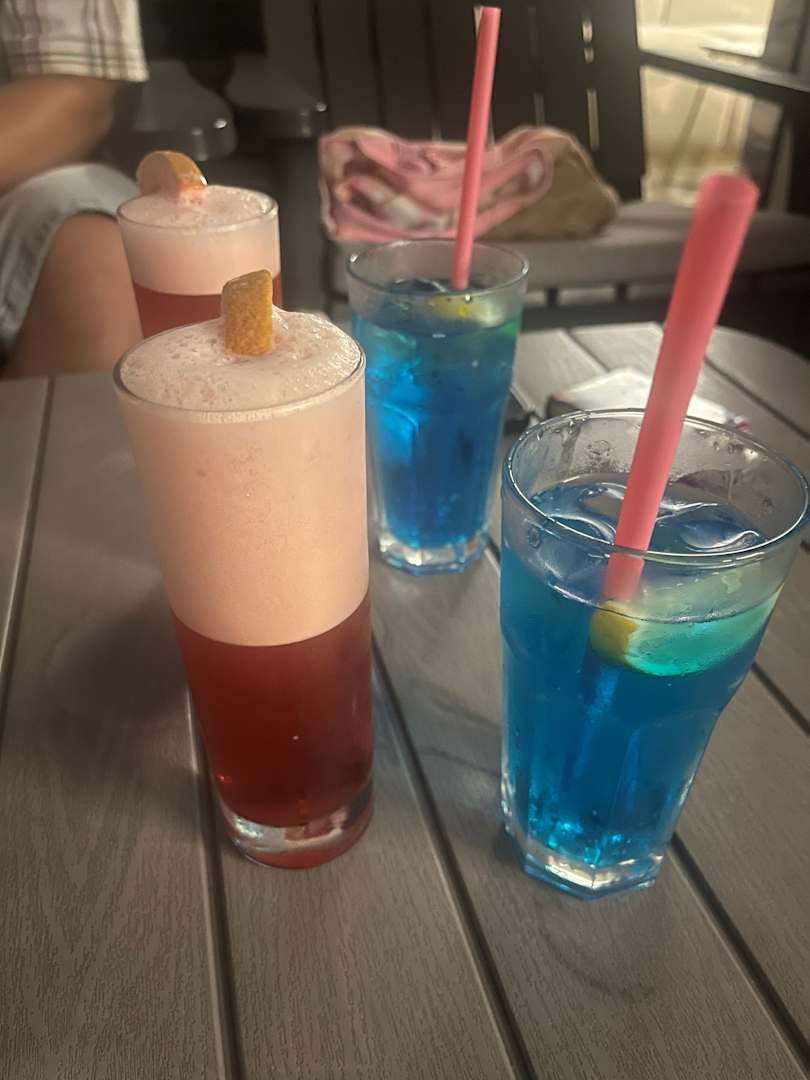 LobbyCocktailkarte wurde geändert zwischendurch, sehe lecker! Man hat einen Blick von der Terrasse auf die Bühne zu den Shows.