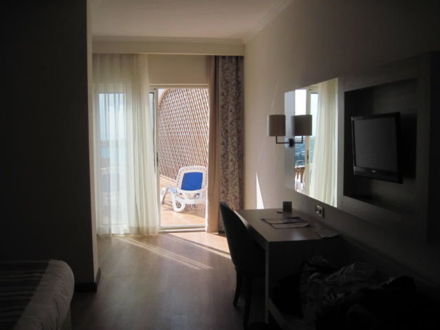 Ein Teil des Zimmers. Hinter der Wand steht noch eine Couch