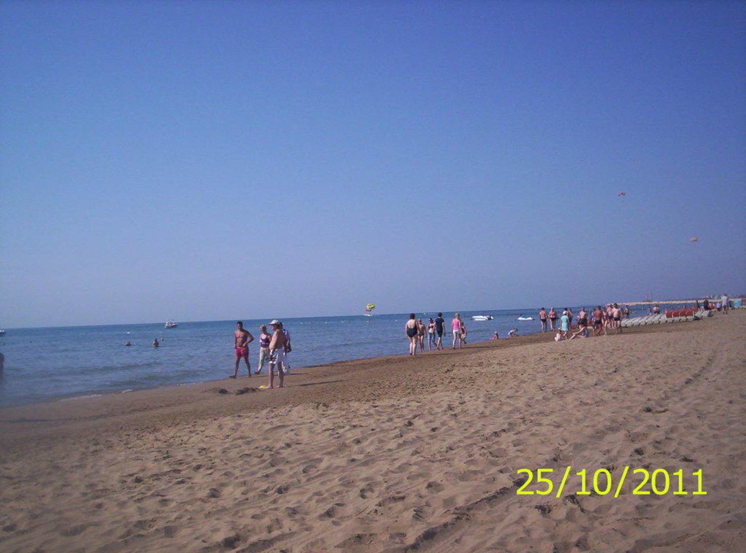 Sehr feinsandiger Sandstrand, flach abfallender Strand, Strandbar mit Getränken und Snacks.
