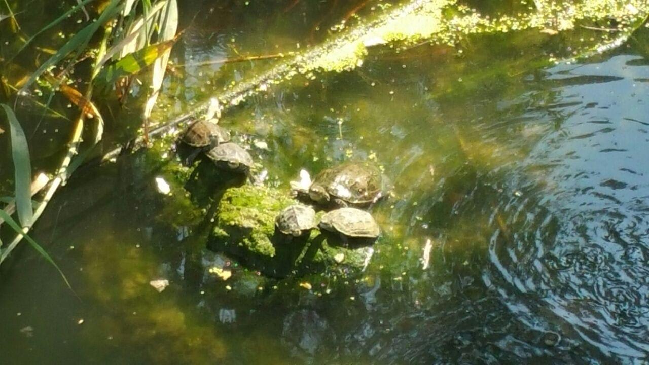 Auf den Weg kann man einige Schildkröten sehen