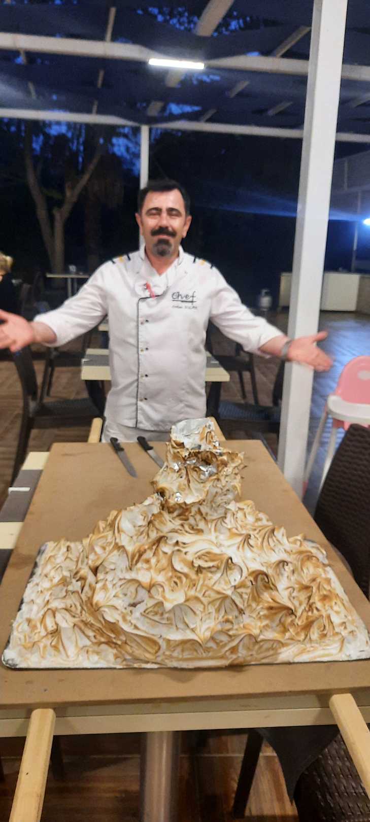 Chefkoch präsentiert die leckere Eistorte am Türkischen Abend