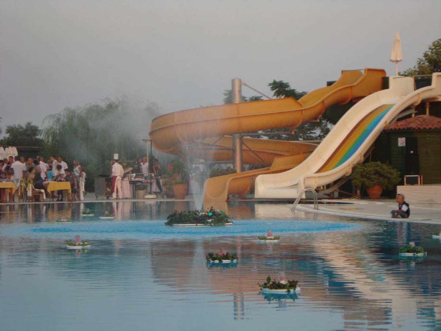 Im Pool schwimmen kleine Blumeninseln