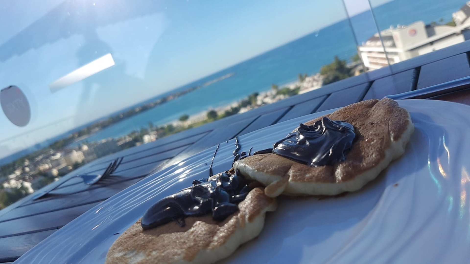 Aussicht von der Dachterasse beim Frühstück