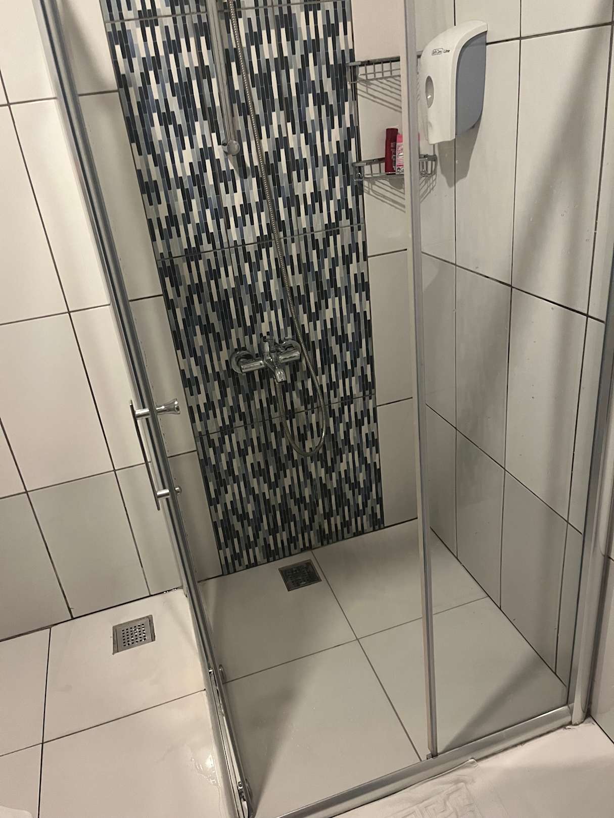 Die Hälfte der Duschkabine fehlte.