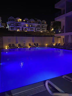 Der erste Pool bei Nacht.