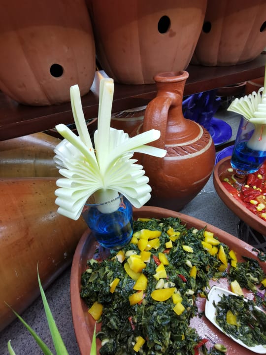 Ornament aus Gemüse (Pore Zwiebel)