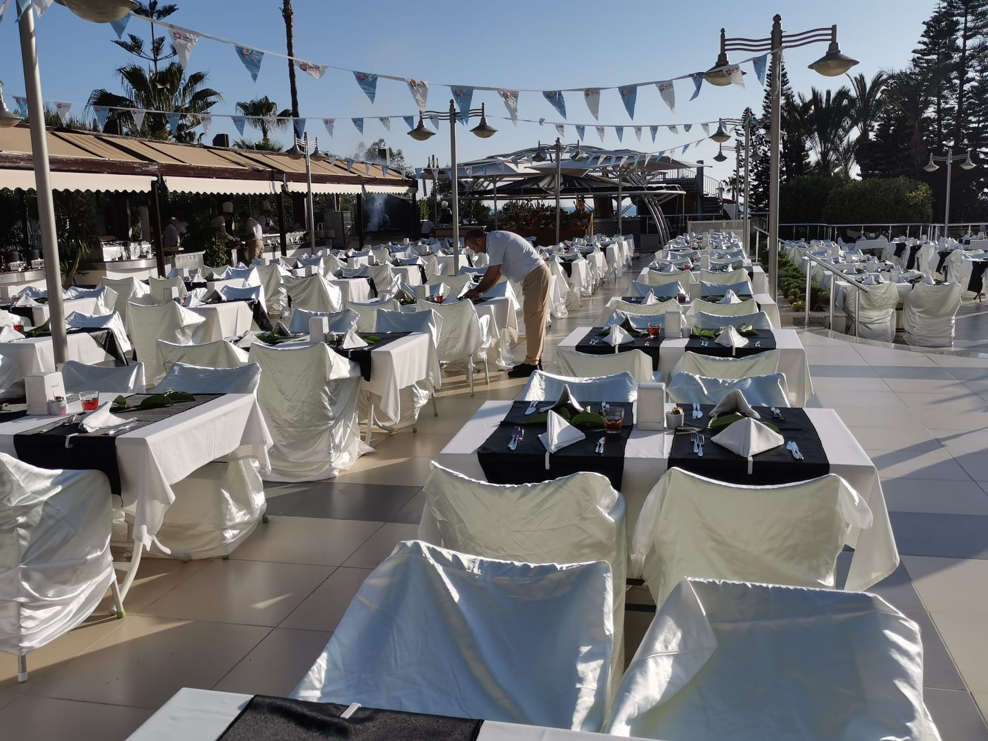 Restaurant-Terrace wird für Gala-Abend vorbereitet.