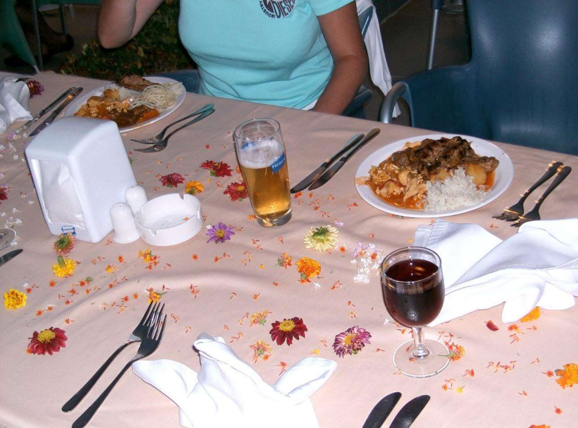 Auf Wunsch dekorieren die Kellner am letzten Urlaubsabend den Tisch mit frisch gepflückten Blumen... und nehmen dafür gerne ein kleines Trinkgeld an... das haben sie sich aber auch verdient!