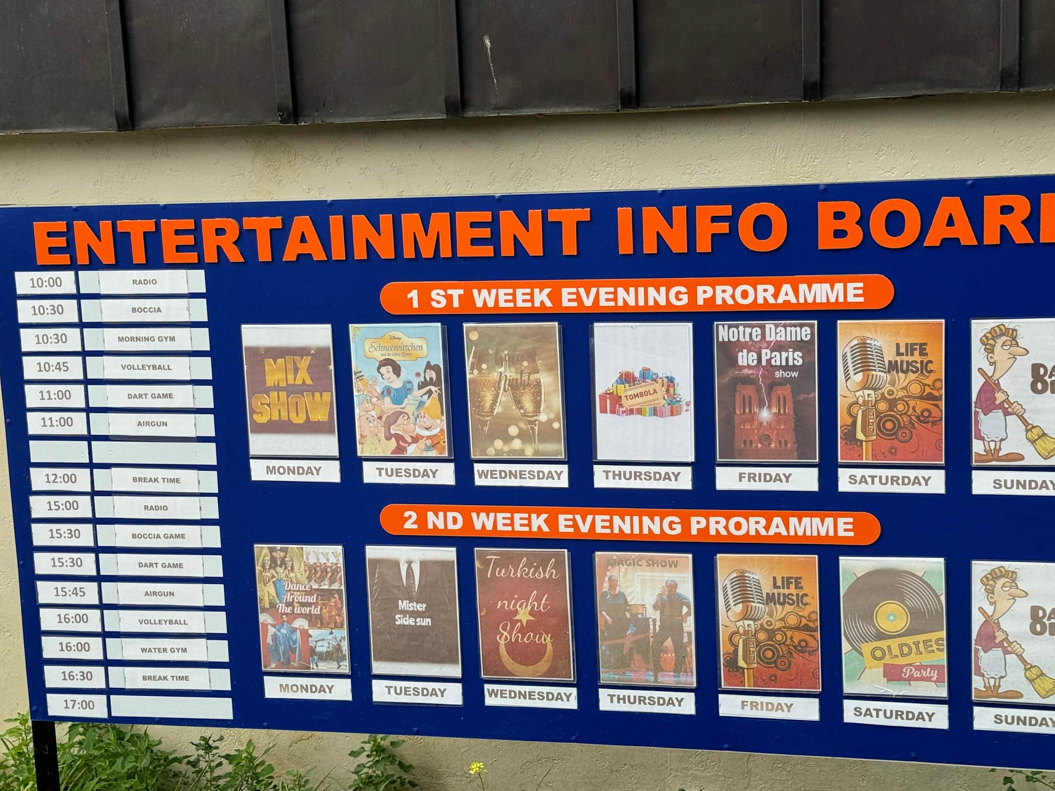 Das Programm Tafel von der Animationsteam