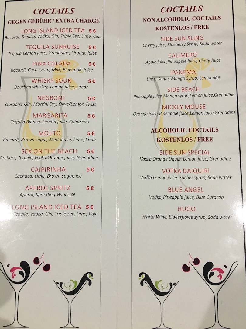 GastroIch wurde befragt ob alle Coctails bei All inclussive kostenlos sind . Hier ist das Bild mit Preisliste zu meine Antwort .