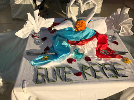 Unsere Tisch am Abend vor Abreise .