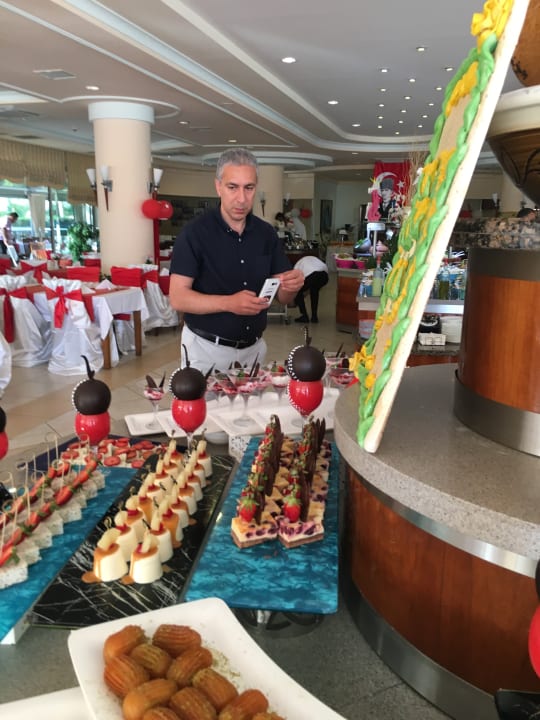 General Manager Serkan Polat überprüft die vorbereitete Kuchen Ausstellung