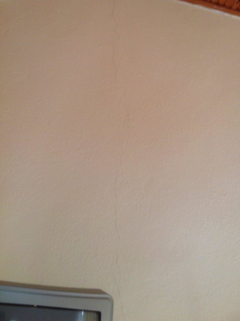Wand ist von oben bis unten gerissen. Wurde zwar geputzt ist aber noch schön zu sehen.