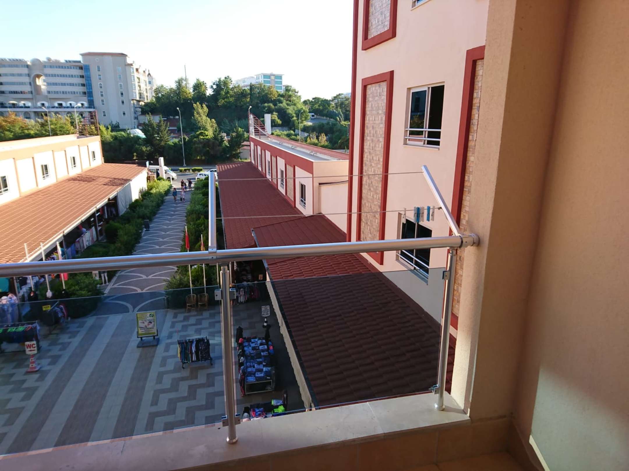 Ausblick vom Balkon zur Straße hin