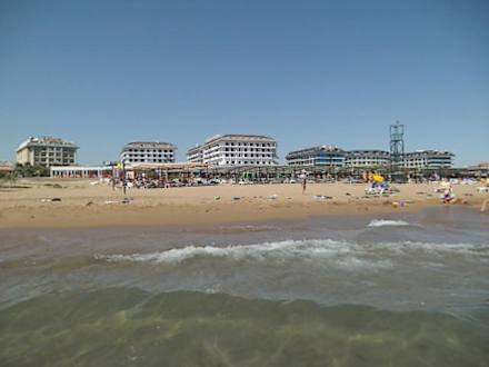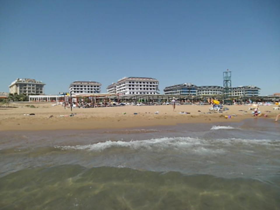 Blick vom Meer zum Hotel-Strand