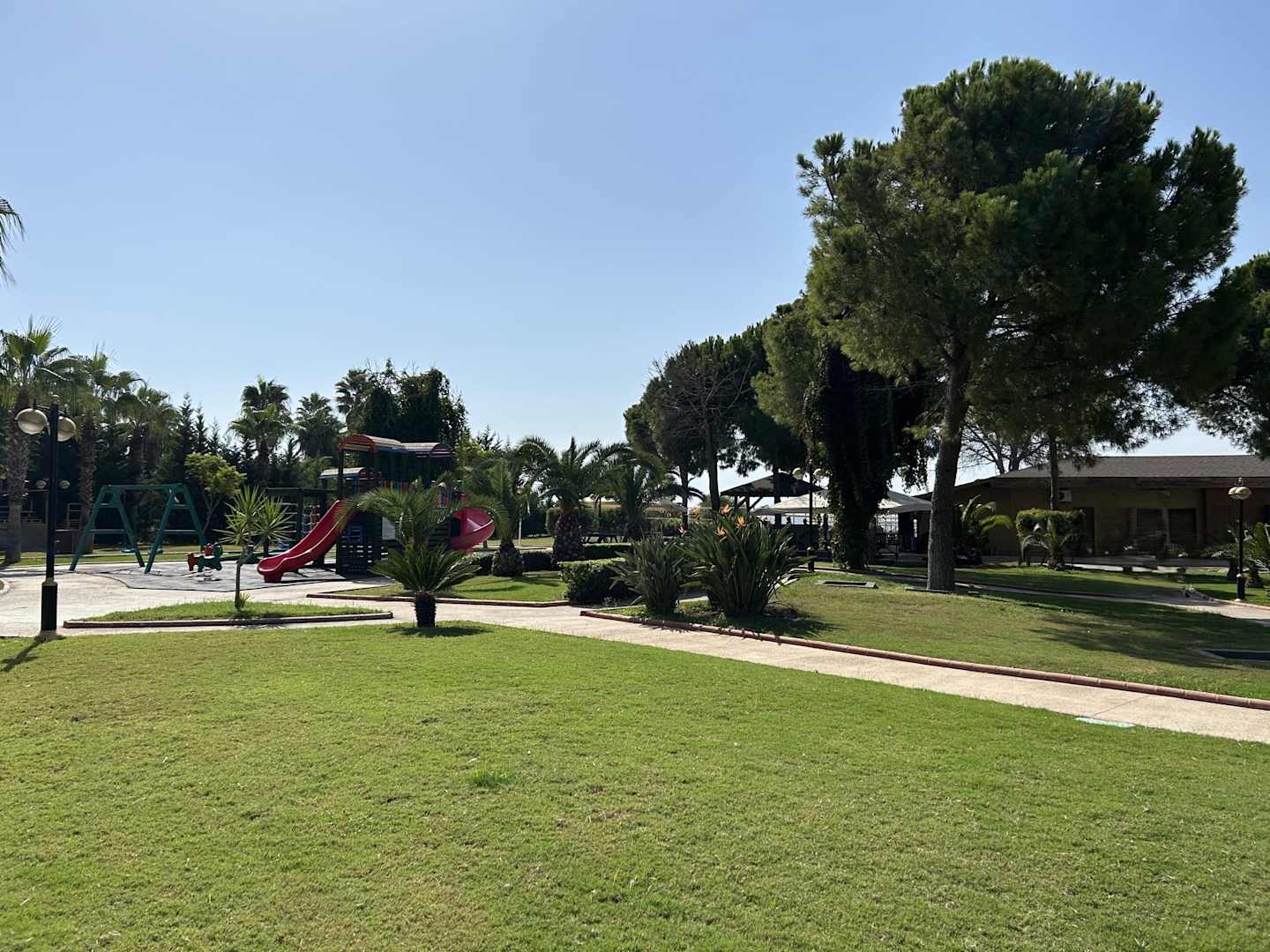 Weitläufiger Garten, Weg zum Strand, mit Spielplatz und Sportmöglichkeiten