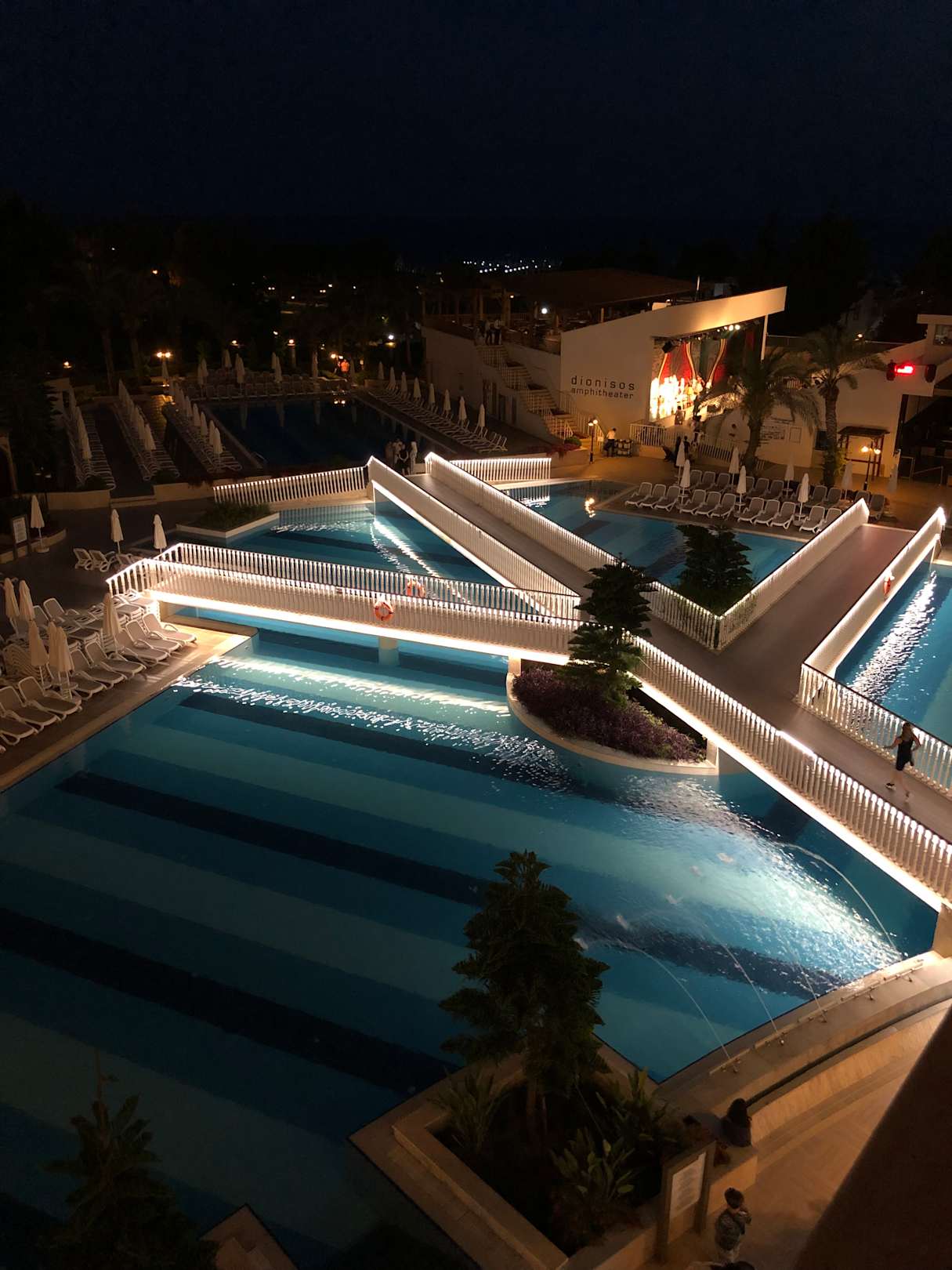 Abends, alles schön beleuchtet.
