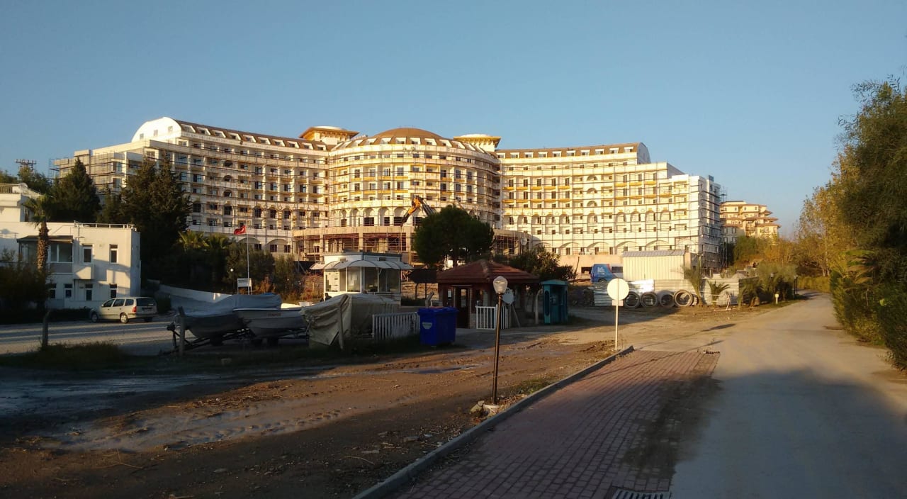 Dieses Bild zeigt die Ansicht des Hotels Sidemarin von der Meerseite und den Eingangsbereich der zwischen Meer und Hotelanlage befindlichen Ferien/ Eigentumswohnungsanlage (Hotel ist auf dem Bild noch im Bau)