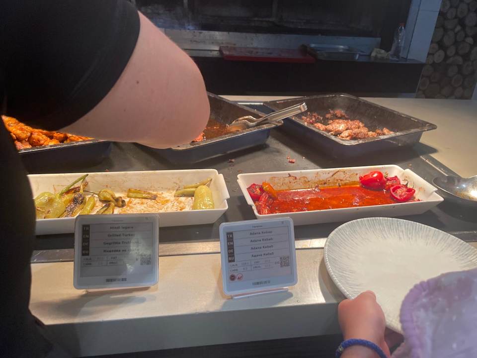 Die zwei Fleischsorten die zum Teil auch leer waren . Es standen aber vier Behälter damit es nach mehr Auswahl aussieht aber mit nur zwei Verschiedenen Fleisch Sorten