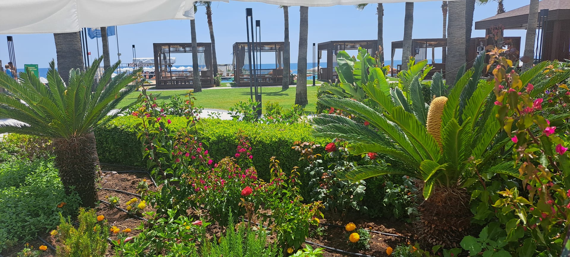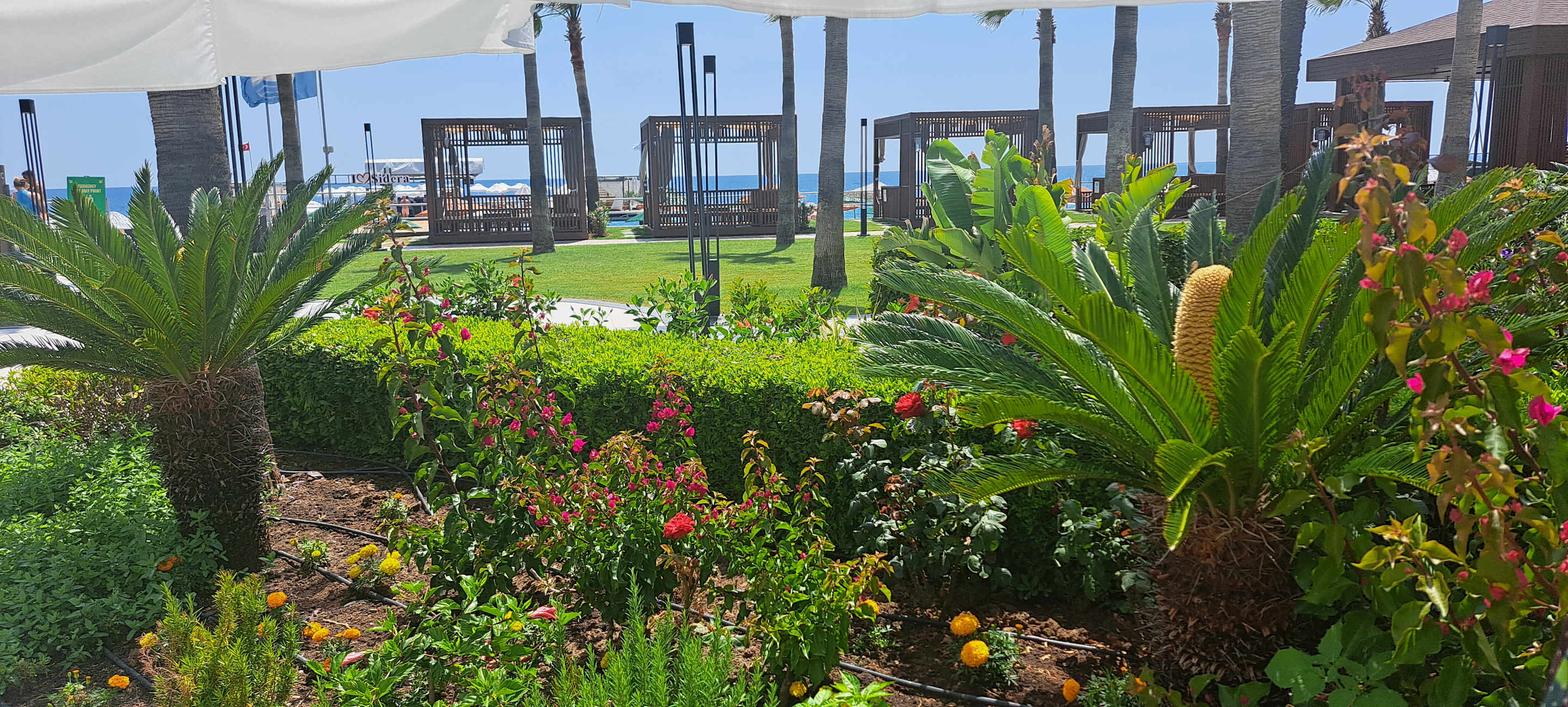 Grünanlage Sicht vom Poolbereich Richtung Meer