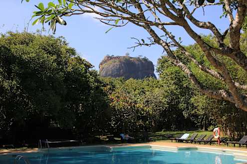 Pool mit Aussicht auf den Sigiriya-Felsen