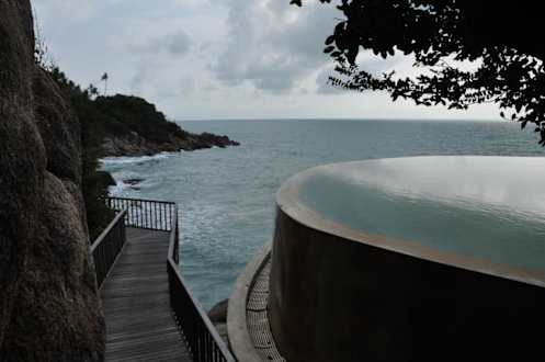 Pool ca 20 m über dem Meer - Weg zum Strand
