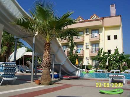 Poolanlage mit Rutsche und Hotel