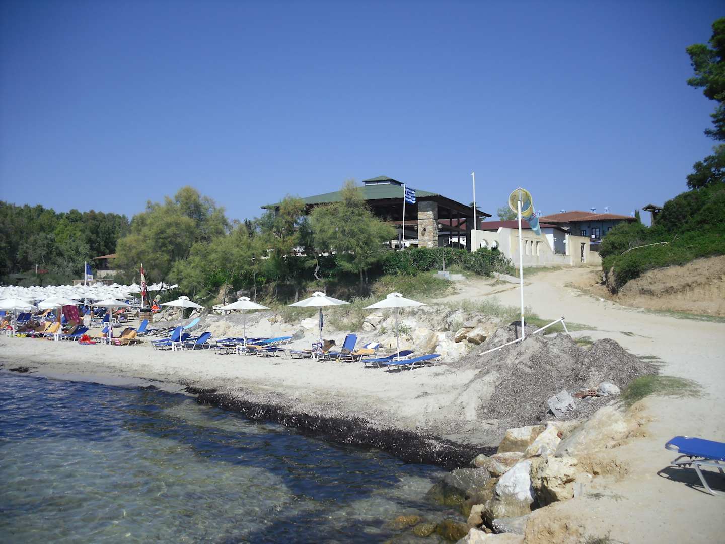 Blick auf Strand und Strandbar