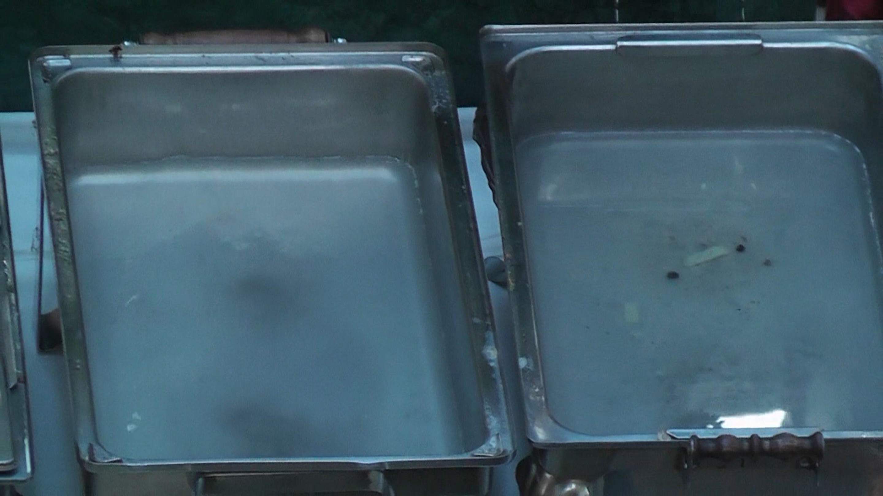 Ekelige Warmhaltewannen mit Essensrest, seit Tagen