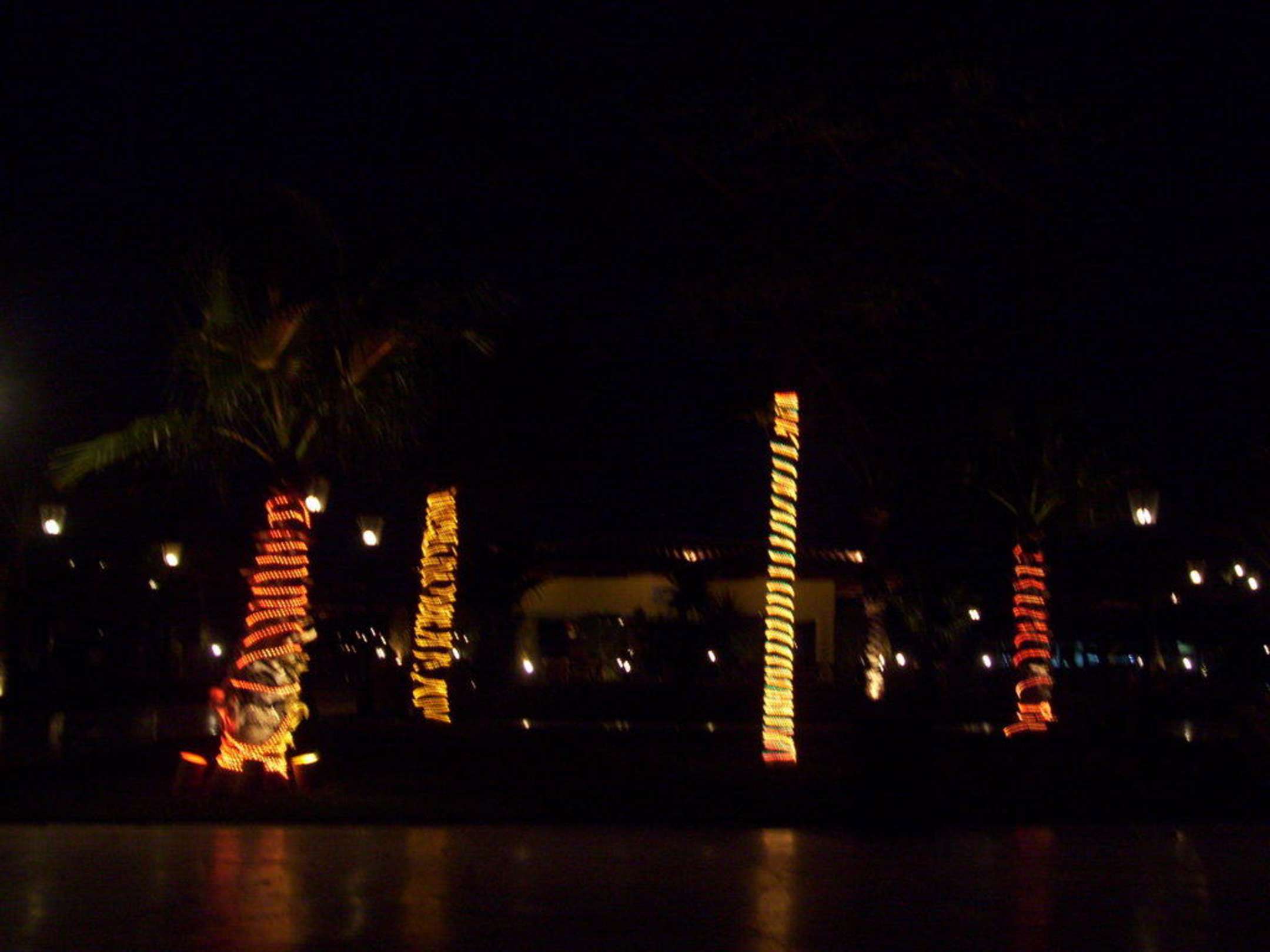 Palmen mit Leuchten geschmückt