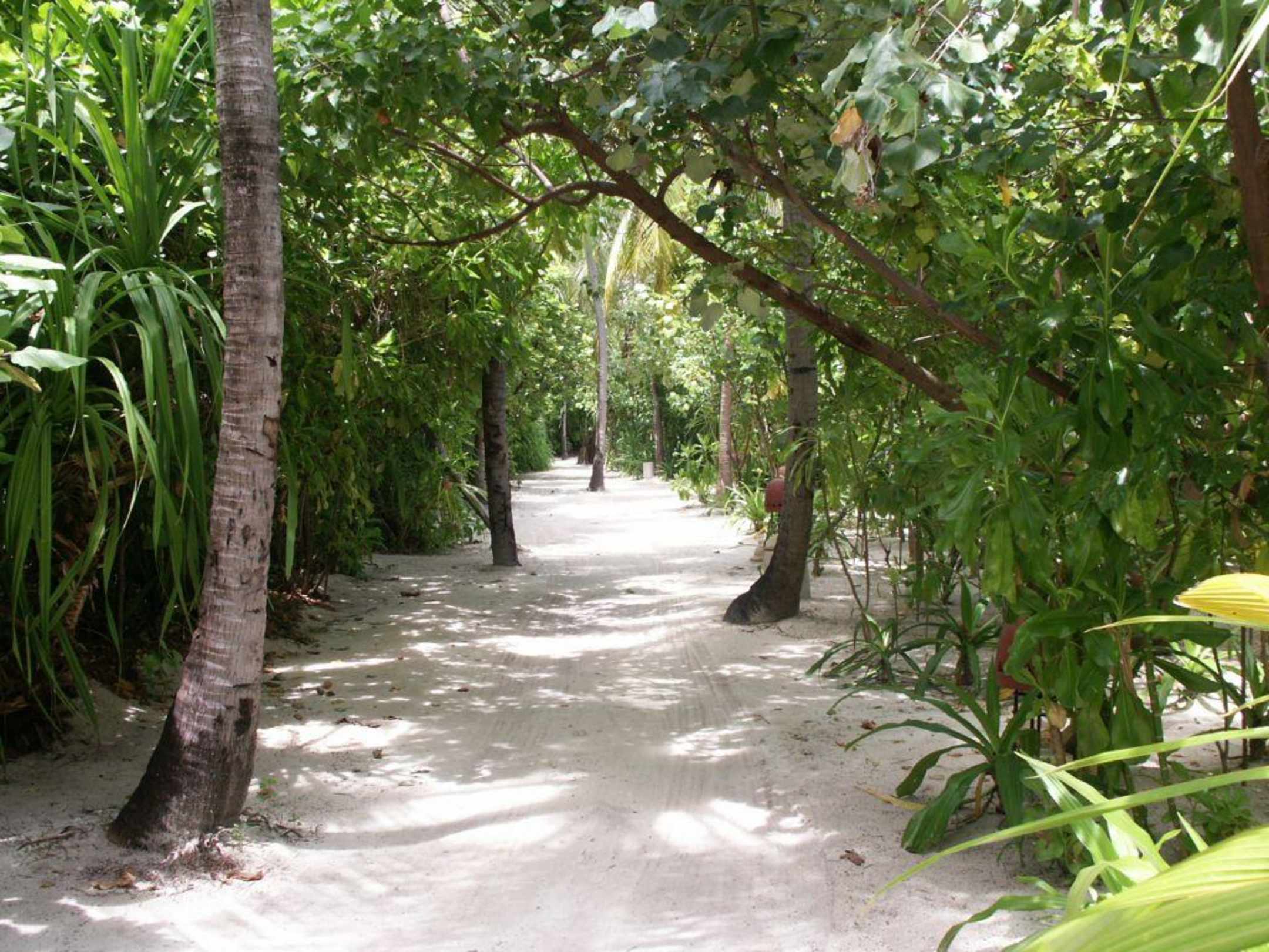 Dieser Sand-Weg führt rund um die Insel zu den einzelnen Strand-Villen.