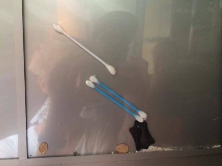 Im Aufzug verdreckte Wattestäbe über Tage hinweg