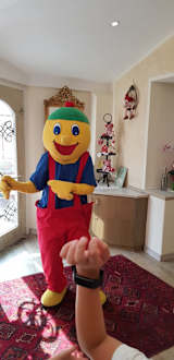Smiley besucht die Kinder beim Frühstück