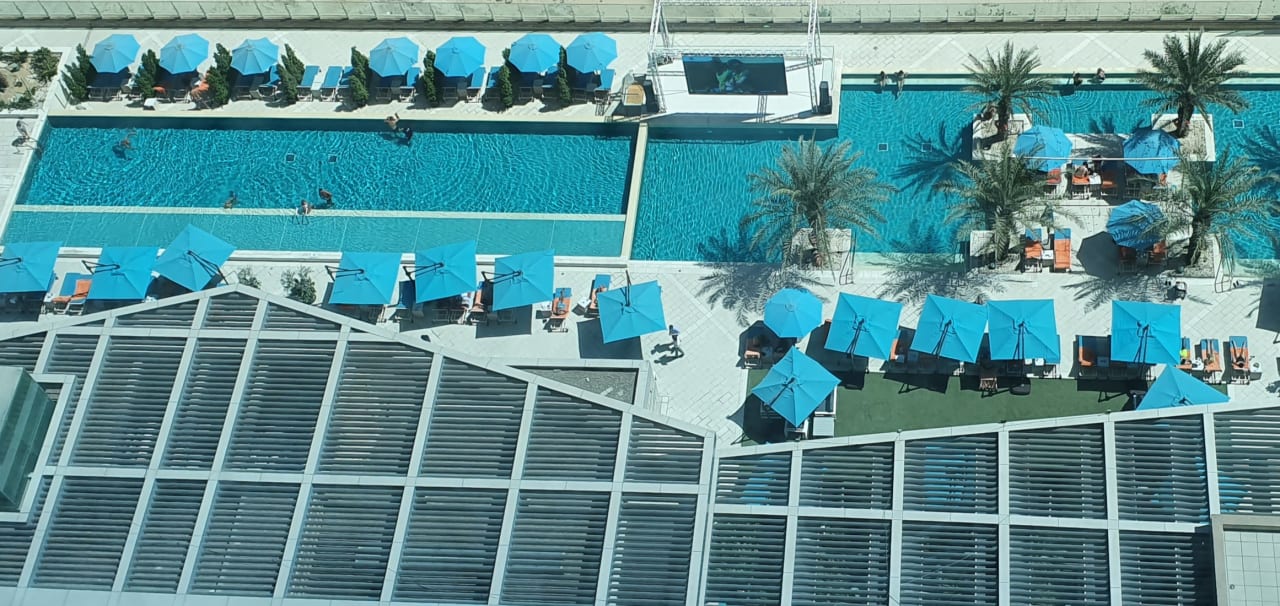 Blick vom Zimmer 2514 auf Pools