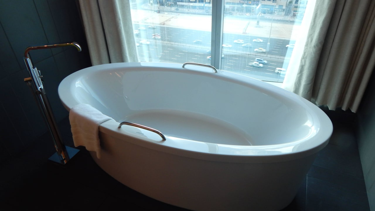 Freistehende Badewanne mit Ausblick