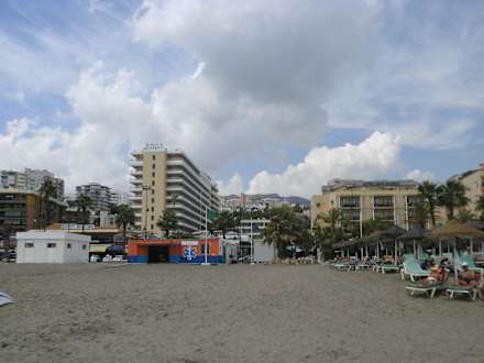 Ansicht vom Strand auf die 3 Hotels