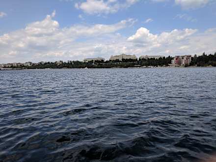 Blick vom Wasser aus auf den Hotelkomplex, Mitte Palace