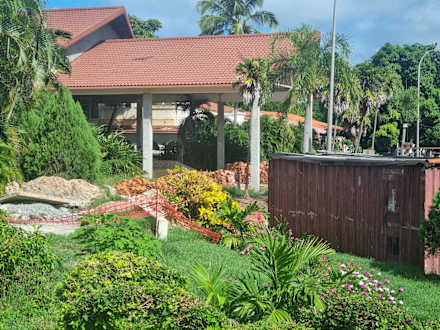Der andere Eingang des Hotels mit den geschlossenen Restaurants und Bars