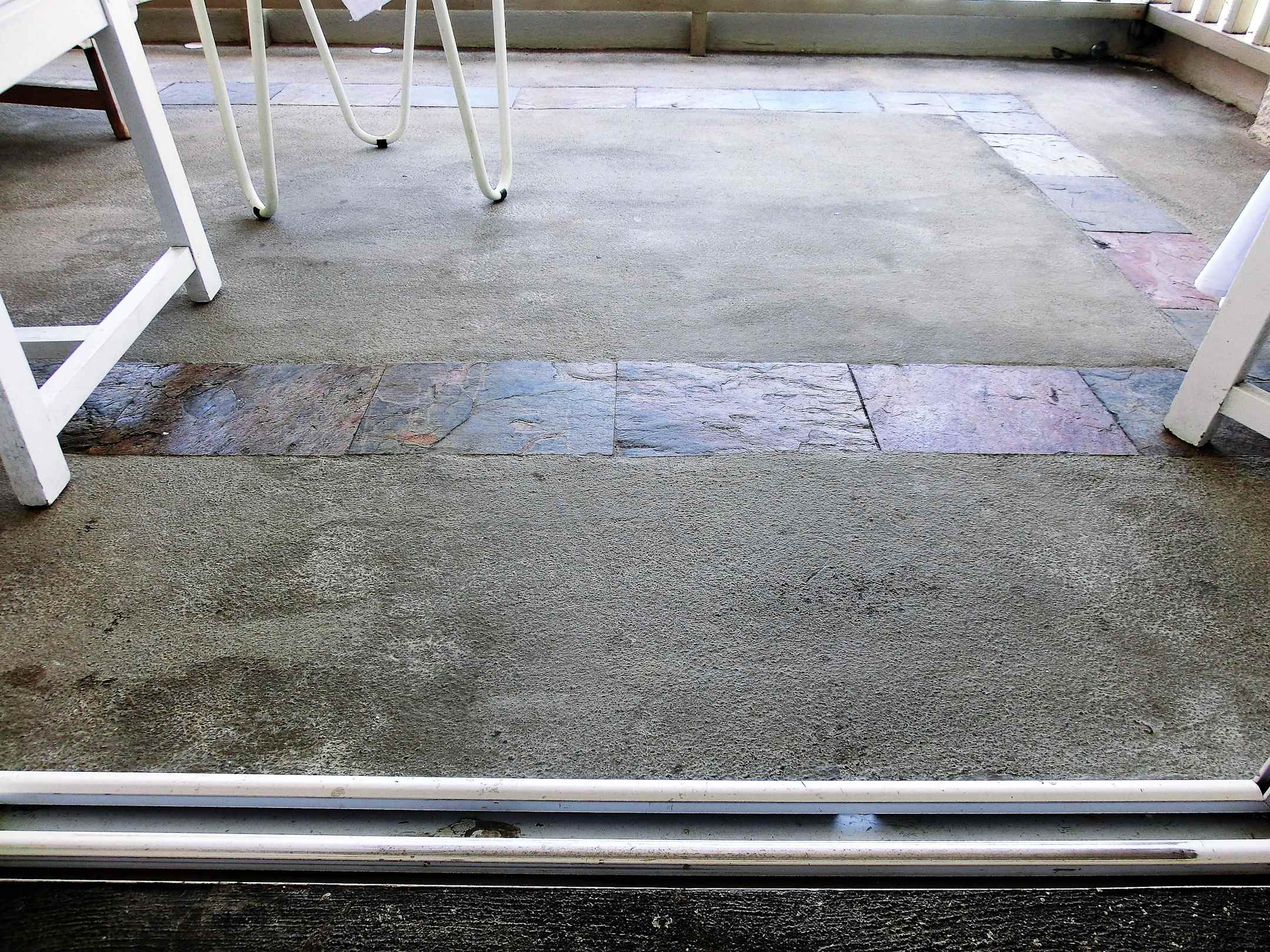 Lieblose Betonterrasse mit ein paar eingelegten Fl